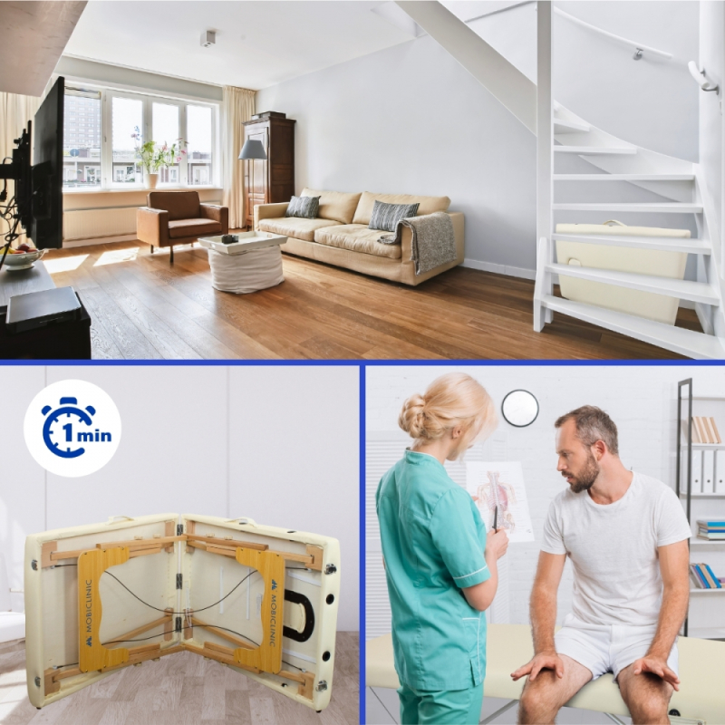 Składany stolik pozwala na wykonywanie masaży z większym komfortem, mobilnością, a przede wszystkim bezpieczeństwem.