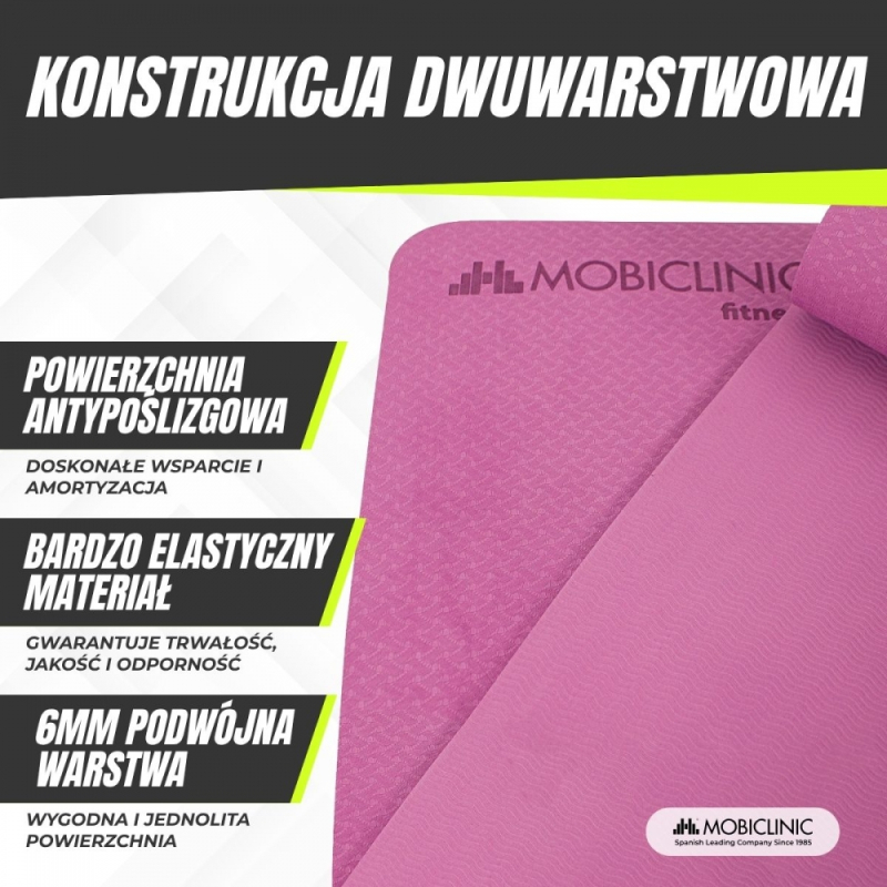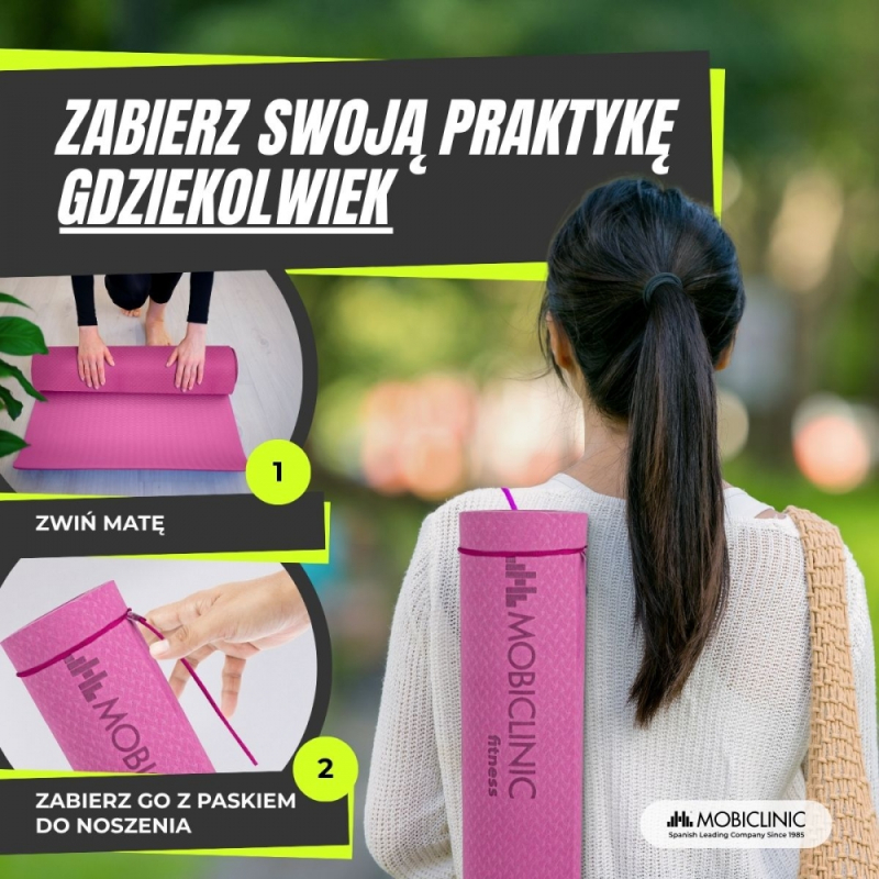 Mata do jogi | Antypoślizgowa | 181x61cm | 6mm | Pasek transportowy | Elastyczny | Ekologiczny| Różowy |EY-01| Mobiclinic