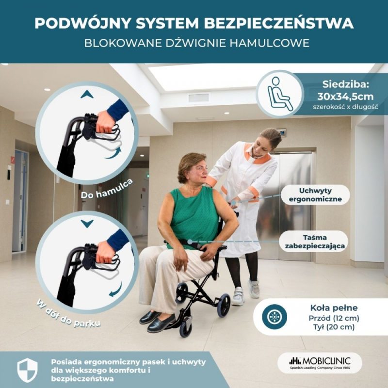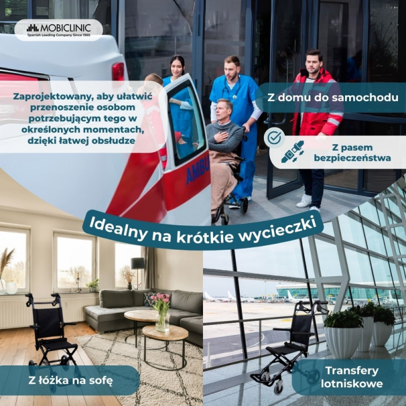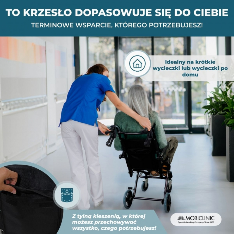 Podwójny drążek dolny, który posiada, zapewnia większe poczucie bezpieczeństwa, będąc jednocześnie wykonanym z materiału ognioodpornego. Ergonomiczne oparcie i siedzisko fotela ortopedycznego zapewniają maksymalny komfort zarówno pacjentom, jak i ich towarzyszom, ponieważ umożliwiają podniesienie zarówno podłokietników, jak i podnóżków. Krótko mówiąc, jest to idealny składany wózek inwalidzki, jeśli szukasz bezpieczeństwa, komfortu i łatwości użytkowania.
