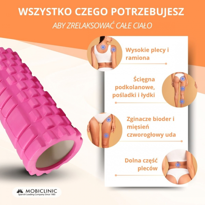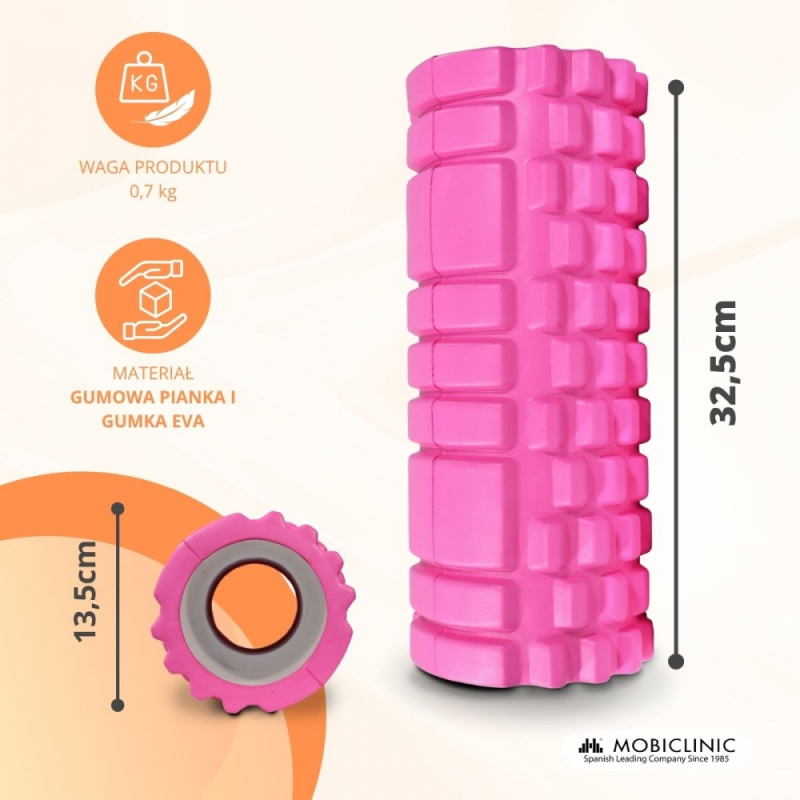Wałek do masażu | Guma piankowa | 14x33 cm | Wszechstronny | Lekki | Zapobiega kontuzjom | Pomarańczowy | FitRoller | Mobiclinic