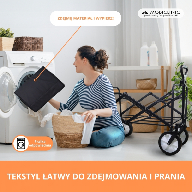 SKŁADANY I PRZENOŚNY: Składana konstrukcja ułatwia przechowywanie i transport, dzięki czemu jest idealną opcją do codziennego użytku i w dowolnym miejscu. Gdy nie jest używany, wózek transportowy składa się kompaktowo, zajmując minimalną przestrzeń i można go łatwo przenosić w dowolne miejsce. Dodatkowo, jeśli chcesz, możesz usunąć część tekstylną.