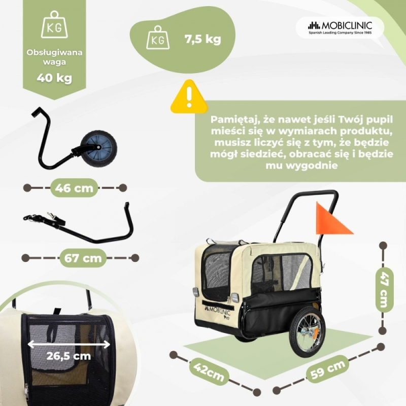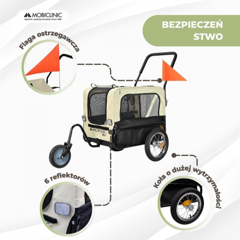 Przyczepa dla psa i wózek transportowy | 2 x 1 | Pokrowiec wodoodporny | 40 kg | 600D Oxford| 123x67x100 cm | Kora | Mobiclinic
