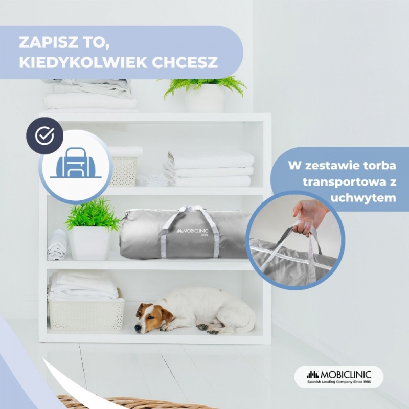 TRANSPORTOWALNY: Ten kojec jest łatwy i intuicyjny w montażu i demontażu, co pozwala na jego przenoszenie między pokojami lub różnymi przestrzeniami dzięki torbie transportowej. Wykonany jest z przyjaznego dla środowiska poliestru, żelaza i polipropylenu, które są bezpieczne dla niemowląt.