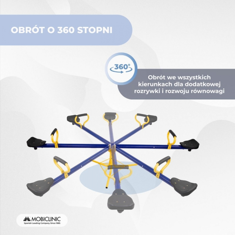 OBRÓT 360°: Huśtawka Mobifun została zaprojektowana tak, aby zapewnić idealne wrażenia z zabawy dzięki możliwości obrotu 360°. Pozwala to dzieciom huśtać się w dowolnym kierunku, wspierając rozwój równowagi i koordynacji od najmłodszych lat.