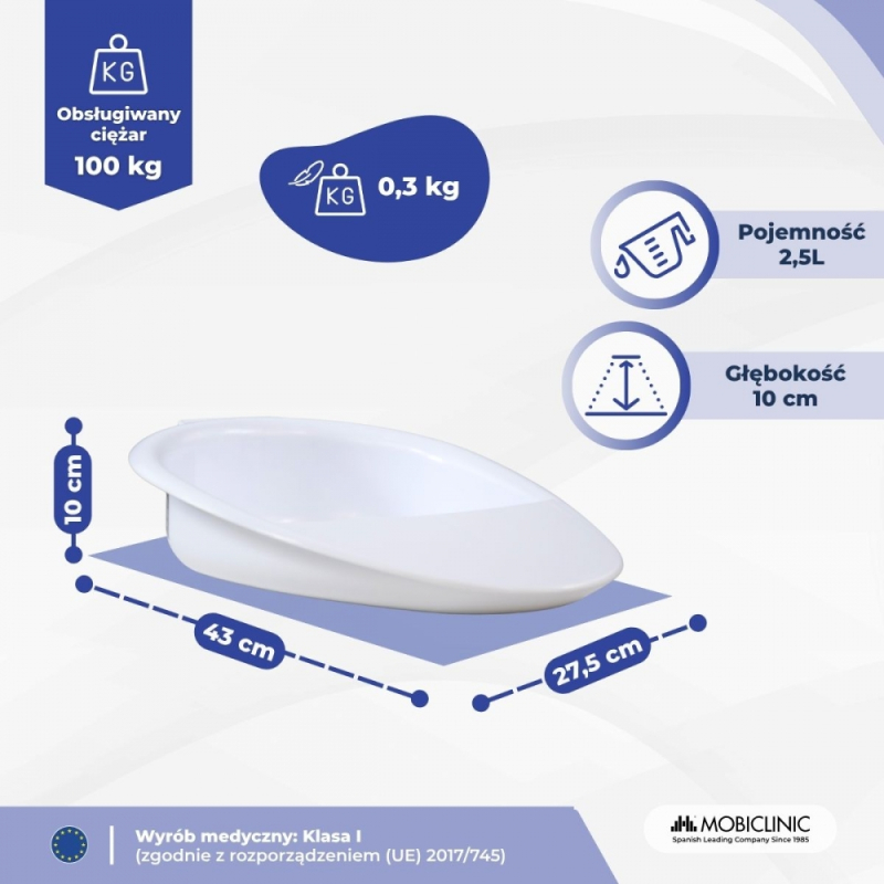 Klin sanitarny | Pojemność 2500 ml | Lekki i wytrzymały | Anatomiczny | Do użytku domowego i klinicznego | Seren | Mobiclinic