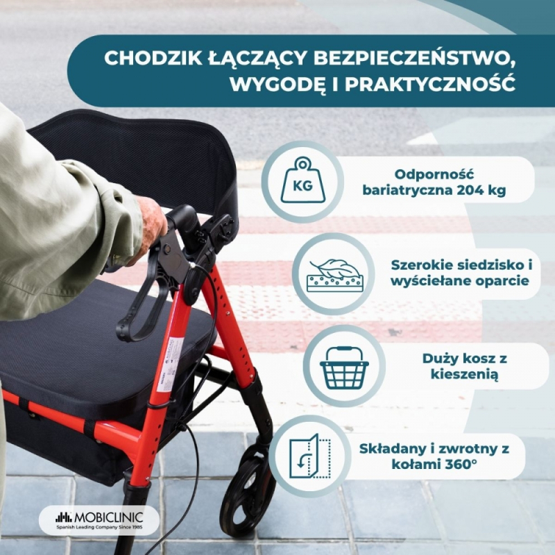 Chodzik bariatryczny | Składany | Do 204 kg | Wzmocnione aluminium | Hamulce | Koła 360º | Koszyk | Madeira | Mobiclinic