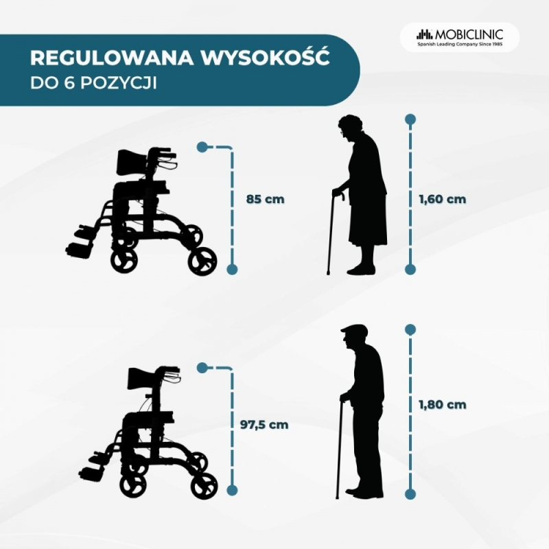 Chodzik Ibiza Mobiclinic z podnóżkiem to pomoc zaprojektowana z myślą o bezpieczeństwie, komforcie i praktyczności w codziennym życiu. Dzięki 6-stopniowemu systemowi regulacji (84,6-97,3 cm) dopasowuje się do różnych użytkowników, promując prawidłową postawę i redukując zmęczenie podczas chodzenia.