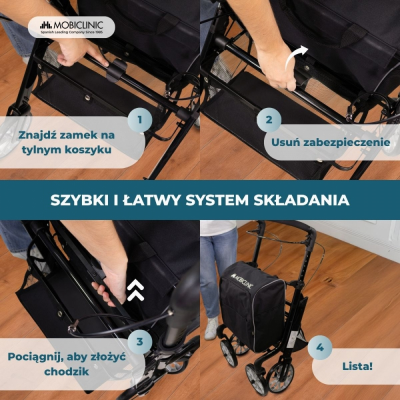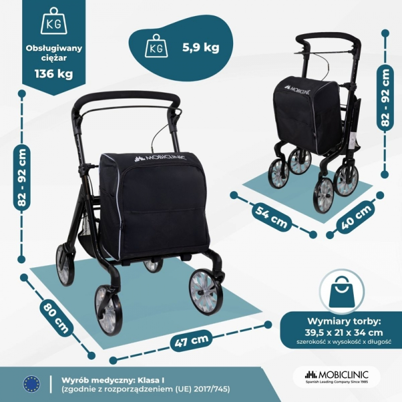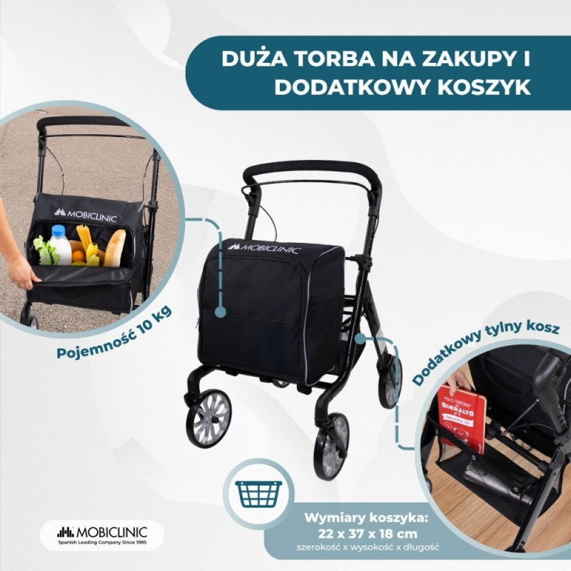 Chodzik składany | Koszyk | Układ hamulcowy | Regulowana wysokość | Dźwignia pojedyncza | Torba XXL | Formen | Mobiclinic