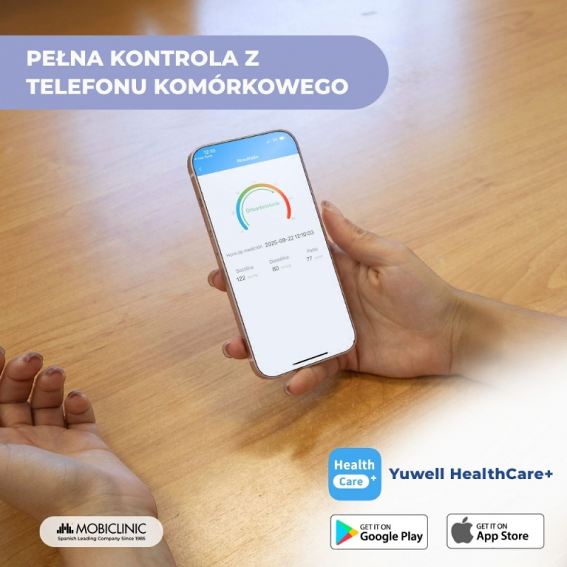 Dzięki łączności Bluetooth i aplikacji Yuwell HealthCare+ możesz zsynchronizować urządzenie i zapisać do 50 grup pamięci, a także uzyskać dostęp do pełnej historii wszystkich pomiarów. Zarówno ciśnieniomierz, jak i aplikacja oferują analizę trendów według daty, co jest bardzo przydatną funkcją w monitorowaniu stanu zdrowia.