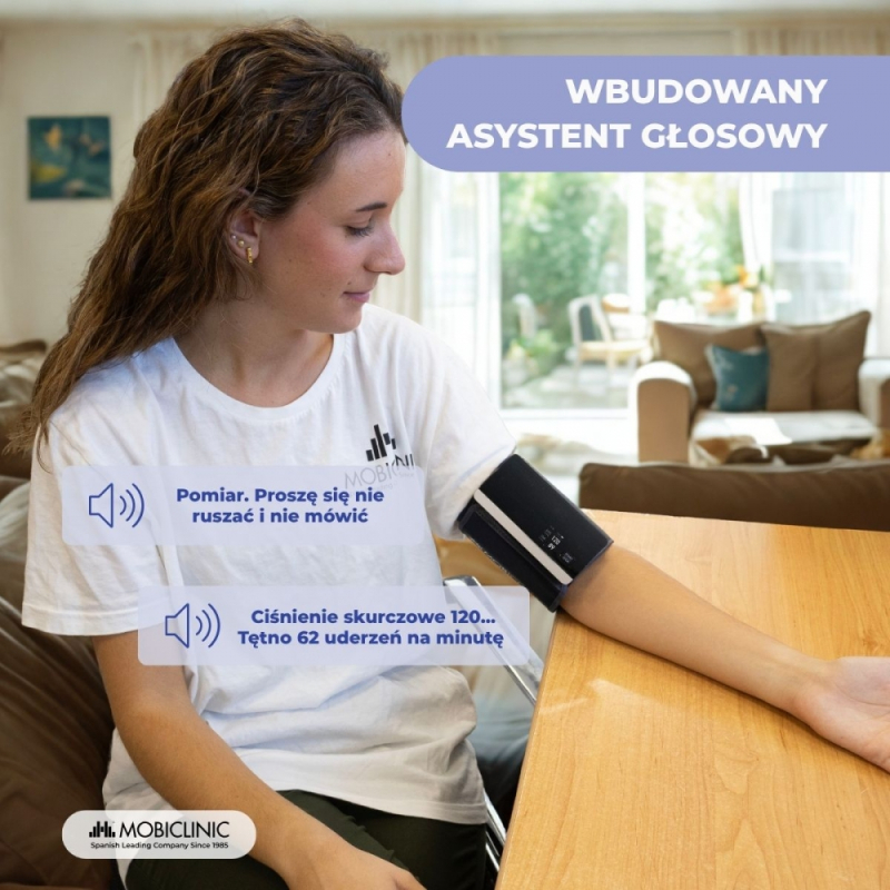 Kolejną istotną zaletą jest przewodnik głosowy, który krok po kroku prowadzi użytkownika przez proces pomiaru (dostępny tylko w języku angielskim i hiszpańskim). Jest to idealne rozwiązanie dla osób starszych i słabowidzących, oferując im większą niezależność.