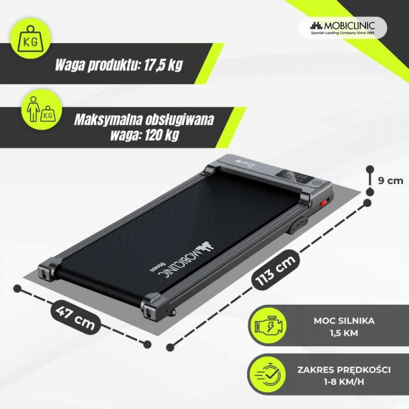 Bieżnia | Do 8 km/h | Wyświetlacz cyfrowy | Pilot zdalnego sterowania | Koła | Andy | Mobiclinic