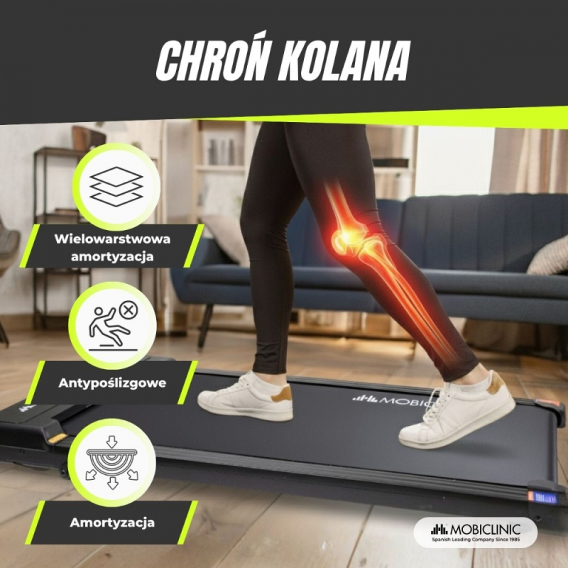 Jedną z jego największych zalet jest amortyzacja , która redukuje obciążenie kolan i piszczeli podczas chodzenia po twardych nawierzchniach. Dzięki temu idealnie nadaje się dla osób, które chcą zachować formę bez nadmiernego wysiłku. Posiada wielofunkcyjny wyświetlacz cyfrowy , który automatycznie i intuicyjnie pokazuje czas, dystans, kalorie, kroki i prędkość.