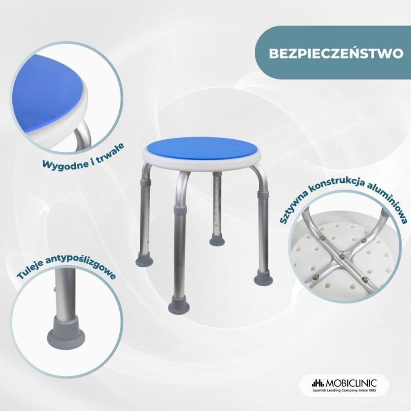 Taboret łazienkowy | Nastawny | Maks 100 kg | Antypoślizgowe tuleje i powierzchnia z pianki EVA | Foco | Mobiclinic