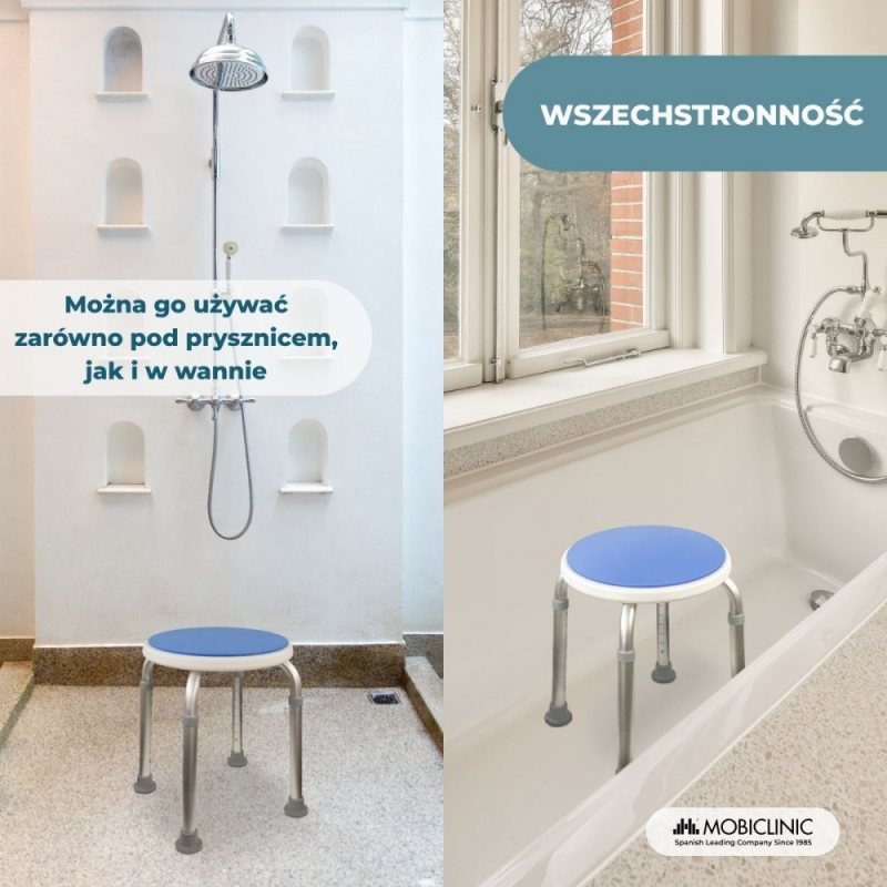 LEKKI: Ten taboret łazienkowy jest bardzo lekki i kompaktowy, dzięki czemu można go łatwo przenosić, przechowywać i zabierać ze sobą wszędzie tam, gdzie jest potrzebny. Idealny dla osób starszych lub o ograniczonej sprawności ruchowej, które potrzebują dodatkowego wsparcia przy codziennej higienie, zapewniając autonomię i bezpieczeństwo.