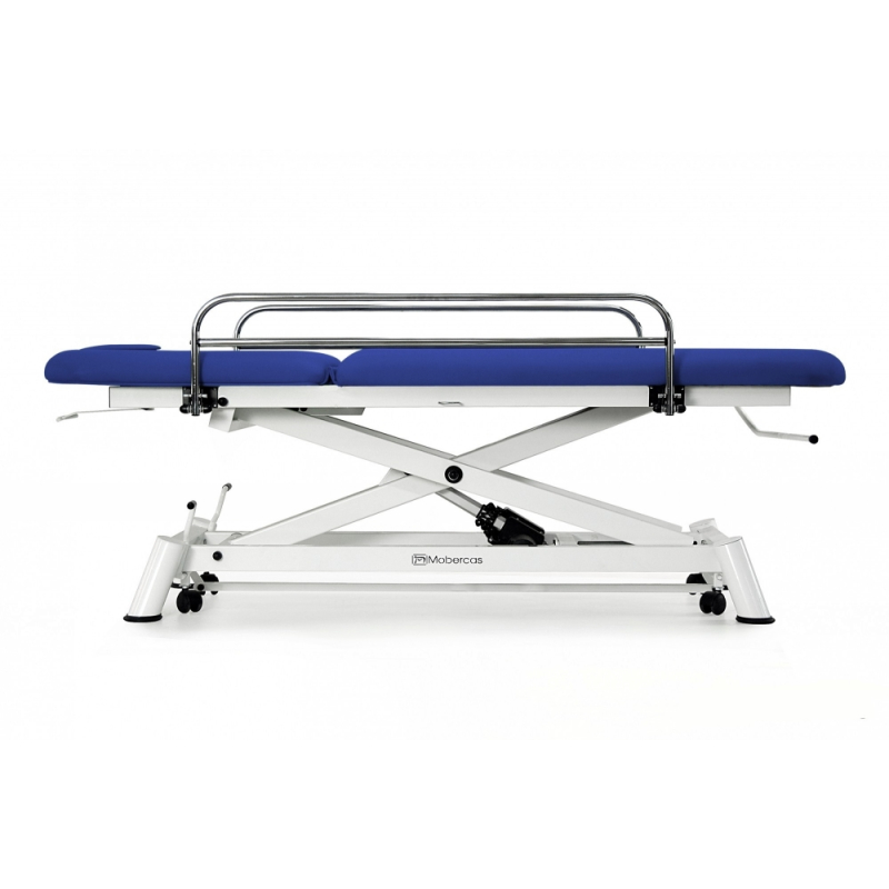 Maca de exame eléctrico de 2 secções com subida recta sem deslocamento lateral, corrimãos, suporte de rodízios, tampa facial e rodízios retrácteis.