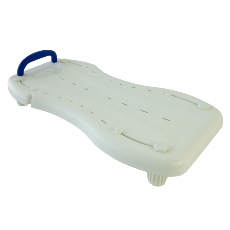 Tábua de banho ergonómica Invacare, feita de PVC para uma entrada ou saída confortável e segura da banheira. Composto por 4 pernas que podem ser ajustadas a banheiras com uma largura interior de 400 a 620 mm, e orifícios de drenagem líquida para uma maior higiene. É leve, fácil de limpar e a sua utilização é recomendada para pessoas que sofrem de perturbações do movimento funcional, a fim de facilitar a sua rotina.