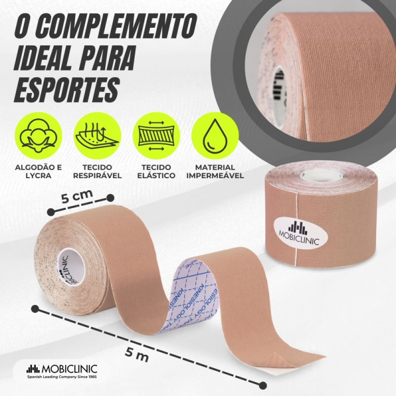 A ligadura kinésio é adequada para o tratamento de lesões, inflamações ou para melhorar a circulação graças a sua impermeabilidade, aderência e respirabilidade.