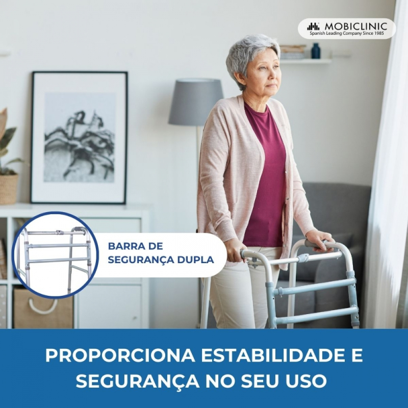 O andarilho para idosos Mesquita é o melhor andarilho sem rodas para idosos que você pode encontrar, com ele as pessoas com mobilidade reduzida podem andar com firmeza e confiança. A sua leve estrutura em alumínio permite que este andarilho ortopédico seja manuseado de forma ágil e fácil, exercendo o menor esforço possível. O movimento torna-se muito mais natural quando se usa este andarilho sem rodas porque acompanha o utilizador progressivamente sem solavancos ou escorregadelas.
