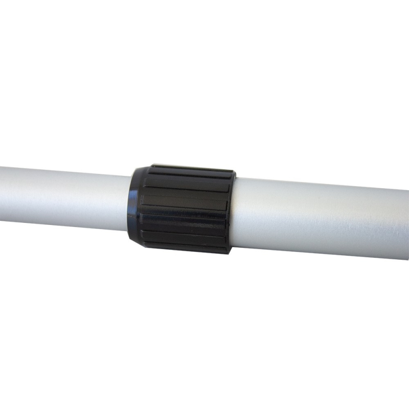 A altura é ajustável de 30 a 45 cm, para que o usuário possa fixá-la de acordo com as suas necessidades. A inclinação também é ajustável para colocar o guarda-chuva na posição correta.
