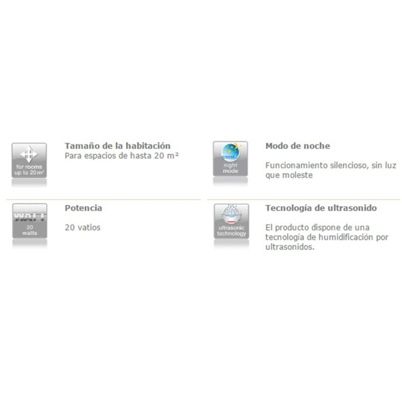 E hum com micropulverizer umidificação fazer tecnologia de ar, ideal para 20m2 quartos comia. He incorpora tecnologia de papel ou dá de ultra-sons: dados de alta frequência Vibrações que as gotículas de Gera de superfície de água. Com esta tecnologia humidificação, esta Unidade consumo é ou de calma e Baixo (de energia Poupança: apenas 20 W) com o banco de power-piggy mínimo humidificação energia foi de 200 ml / h, E realmente notável.