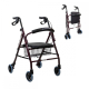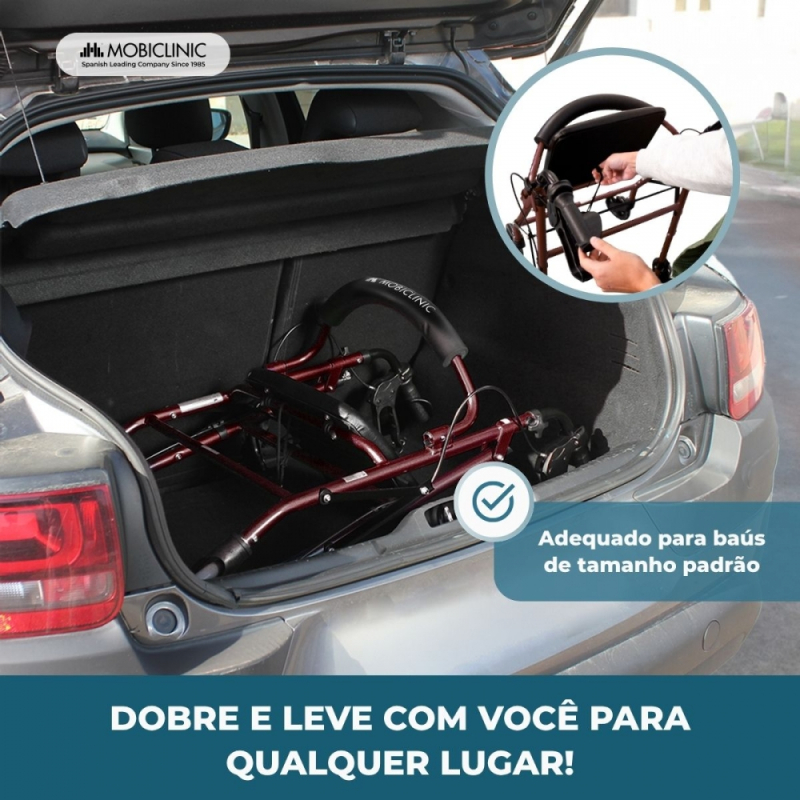 Andarilho de 4 rodas para adultos | Dobrável | Alumínio | Travões de punho | Assento e encosto | Bordô | Escorial | Mobiclinic