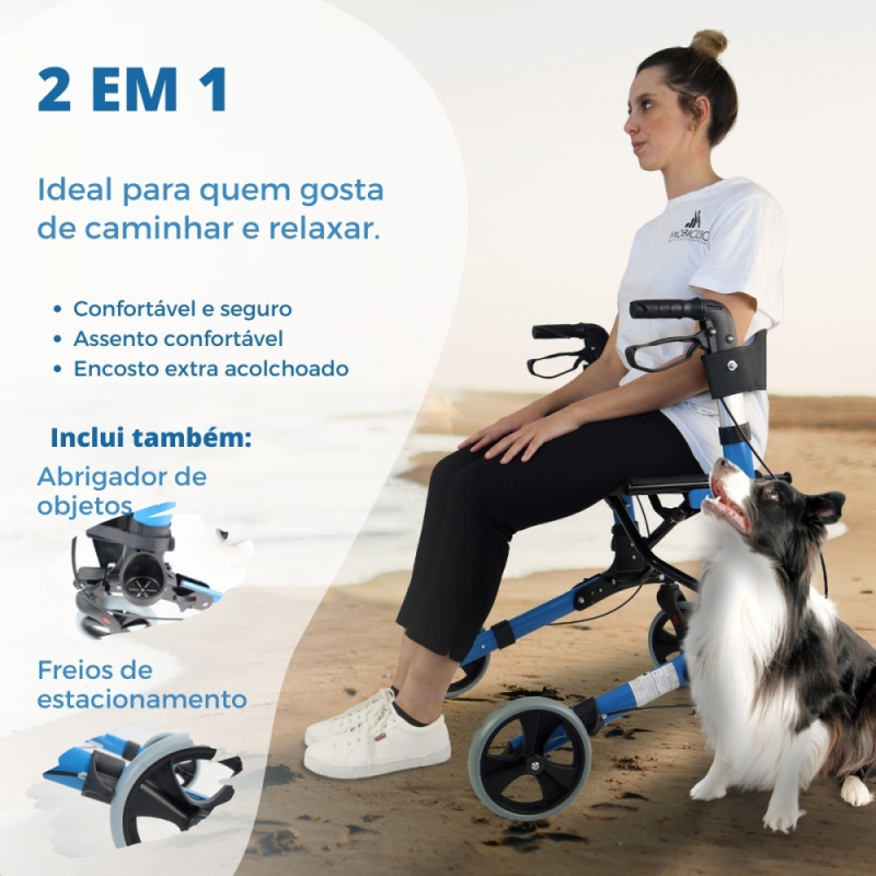 O design do andarilho para idosos é elegante e permitirá que você vá a qualquer lugar com ele. Graças ao facto de ser fabricado em alumínio com acabamentos em azul. O andarilho com assento é muito leve, pesa apenas 7,3 kg. A sua altura é regulável de 83 a 95 cm e, graças a esta funcionalidade, poderá adaptá-la às suas necessidades de forma rápida e fácil.