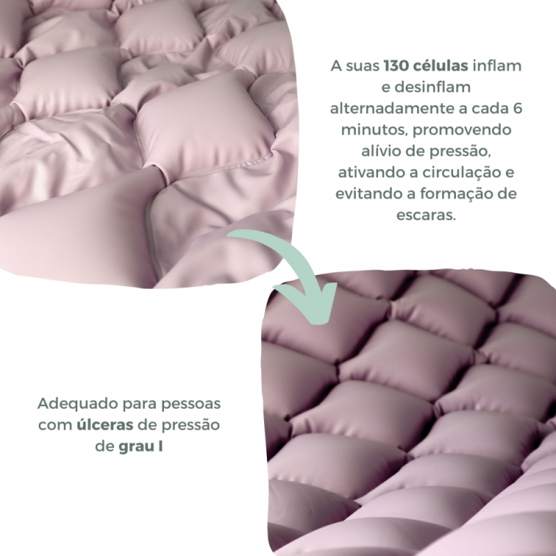 Suas 130 células individuais inflam e desinflam alternadamente por períodos de 6 minutos e, desta forma, o paciente receberá alívio de pressão constante. Essa pressão, que é distribuída sobre a estrutura por células alternadas, ativa a circulação e evita a formação de escaras.