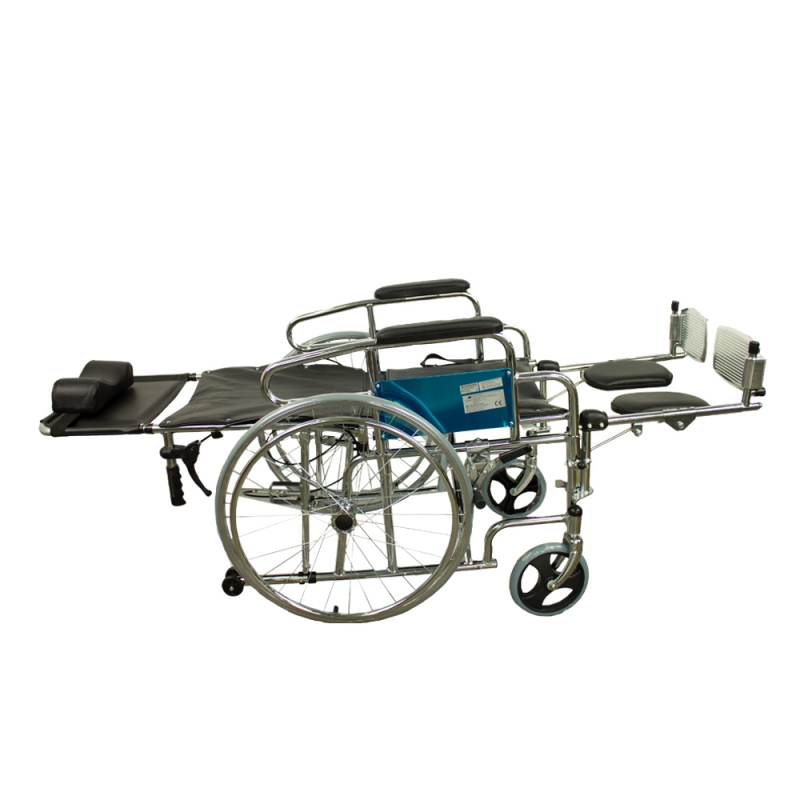 Esta cadeira de rodas para os idosos é feita de aço cromado de alta resistência, o que lhe confere rigidez.