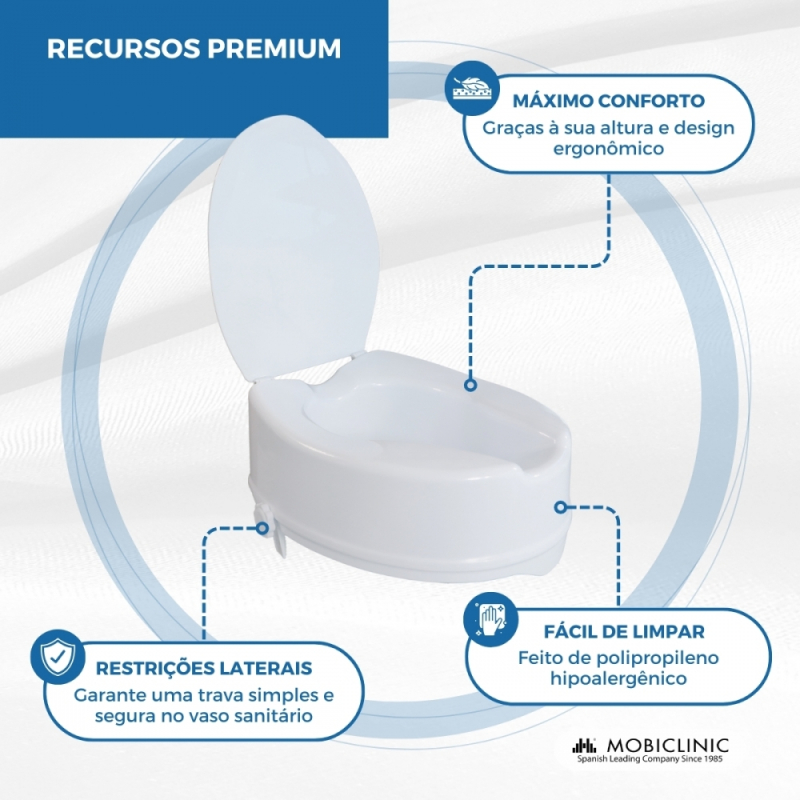 Elevador WC | Com tampa | 14 cm | Branco | Ajustável | Titán | Até 160 Kg | Mobiclinic