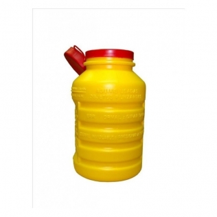 O recipiente médico é um cilindro de plástico, de cor amarela, com quatro depressões circulares transversais e dois planos laterais longitudinais que proporcionam rigidez e facilitam o seu manuseamento. Tem uma boca larga equipada com tampa e contra tampa de plástico vermelho colocada por pressão, conectadas mediante um cordão vermelho. As instruções de uso encontram-se gravadas em alto relevo com a marca de enchimento máximo e a indicação de perigo biológico.