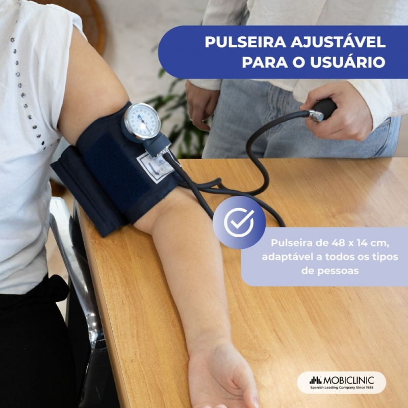 Monitor de pressão arterial aneróide | Pressão arterial | Duas saídas | Confortável | Adaptável | Azul | Mobiclinic