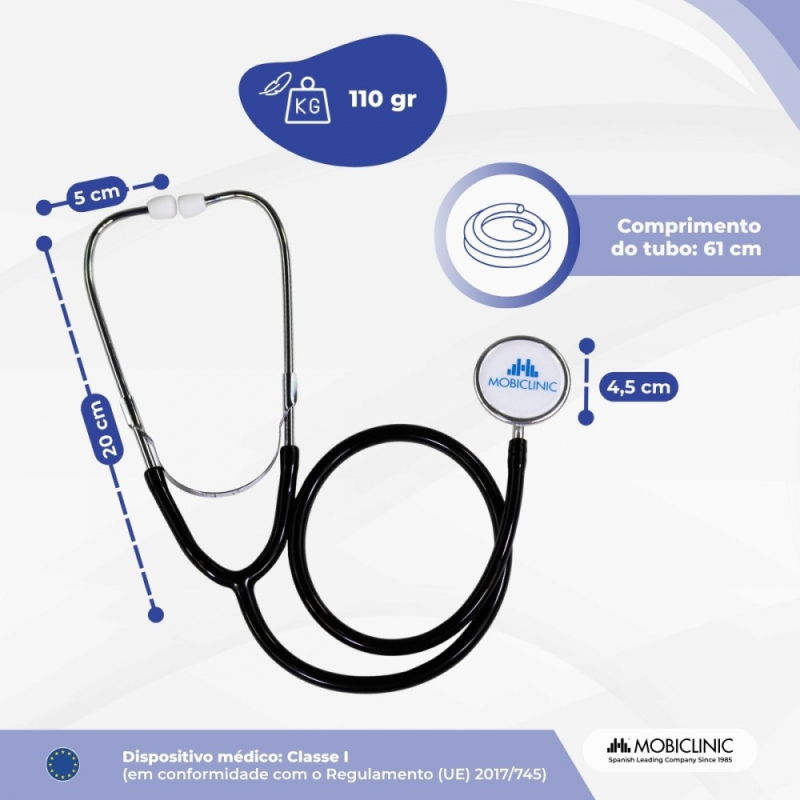 Estetoscópio de sino duplo | Alumínio | Preto | Mobiclinic