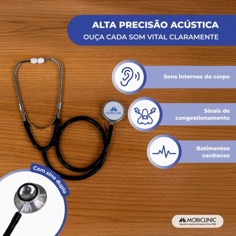 E é que este estetoscópio de duplo sino oferece caraterísticas essenciais para o bom trabalho do profissional de saúde, tais como propriedades acústicas realmente precisas para o diagnóstico mais confiável.