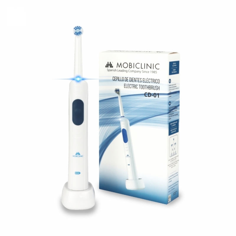 Escova de dentes elétrica | Recarregável | Eficaz | Seguro | CD-01 | Branco | Inclui peças de reposição | Mobiclinic