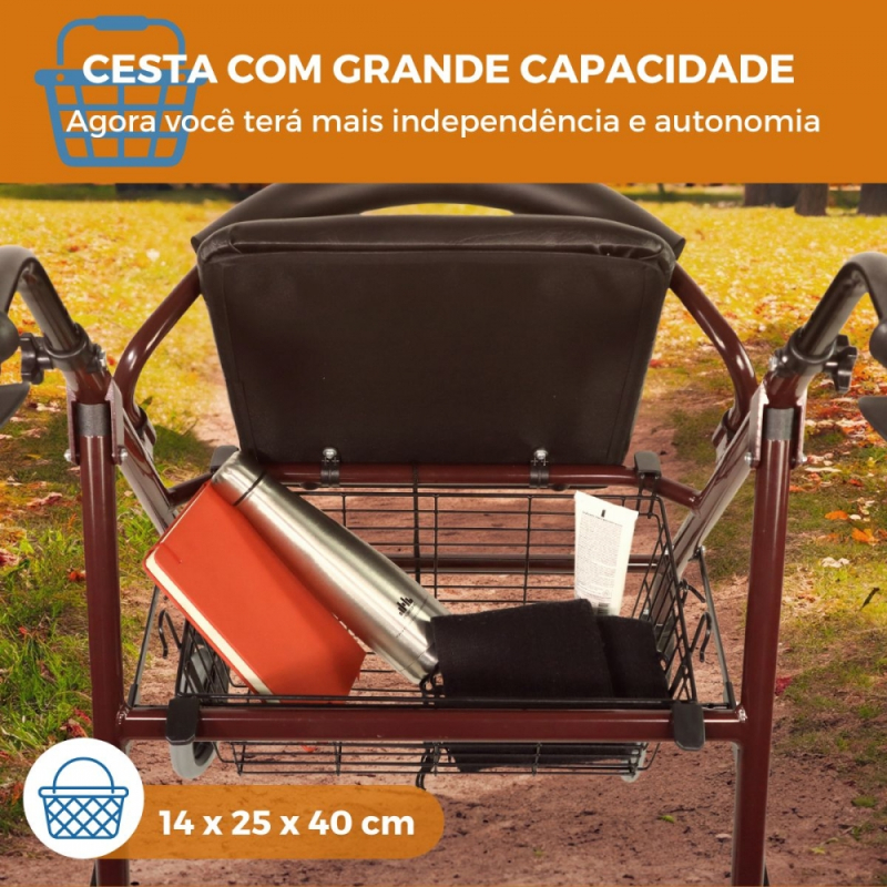 4 PRODUTOS EM 1: não é só um andador para idosos , suas características o tornam um suporte como uma bengala , tem um assento confortável com encosto e uma prática cesta de compras.