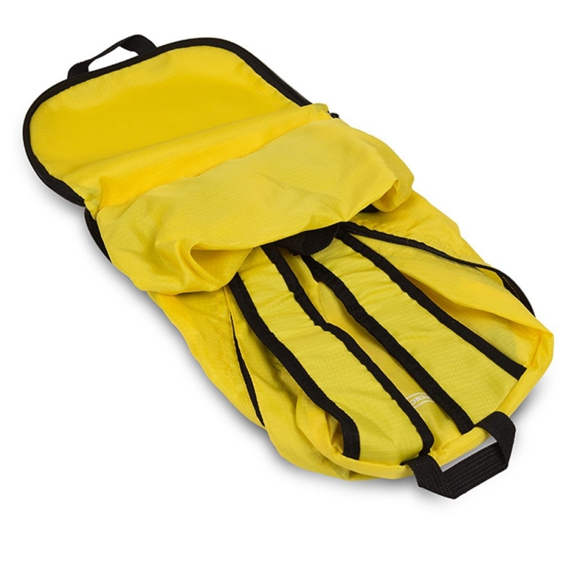 O desenho dobrável da mochila "ripstop" permite que esta seja colocada em qualquer outro saco para transporte, e que seja rapidamente desdobrada caso seja necessário aumentar o volume de carga.