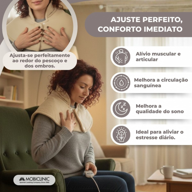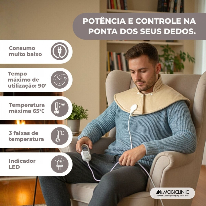 Almofada de pescoço elétrica | 62x60cm | 3 níveis calor | Baixo consumo | Despesa mínima | Desligamento automático | Mobiclinic