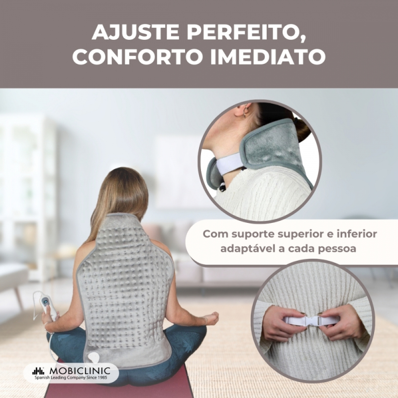 Almofada elétrica dorsal e cervical | 62x43 cm | 3 níveis de calor | Desliga automáticamente | Mobiclinic
