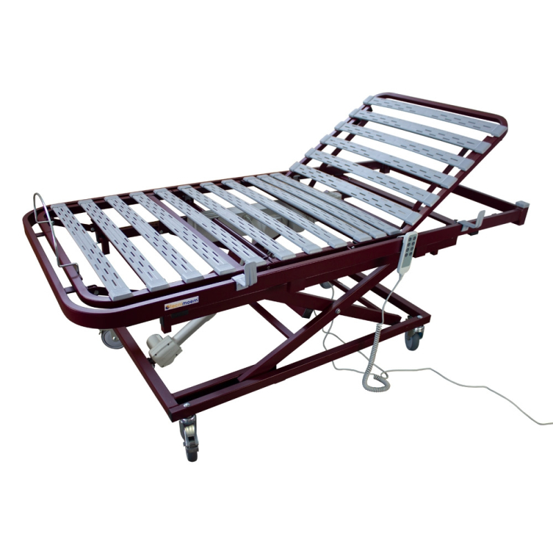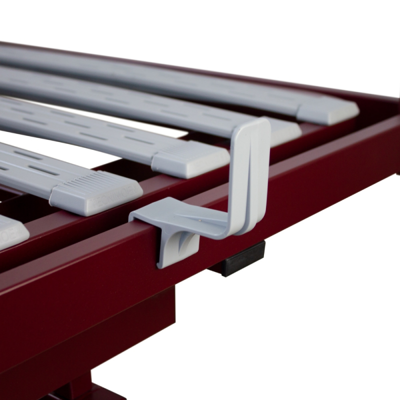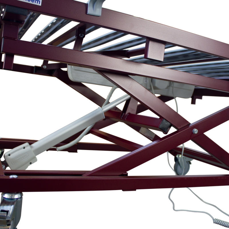 Os quatro planos articulados com ripas ergonómicas permitem um ajuste óptimo de todo o corpo. Além disso, estas ripas estão equipadas com canais de ventilação e higiene. O tamanho e as rodas desta cama articulada tornam-na facilmente transportável e requer muito pouca montagem.