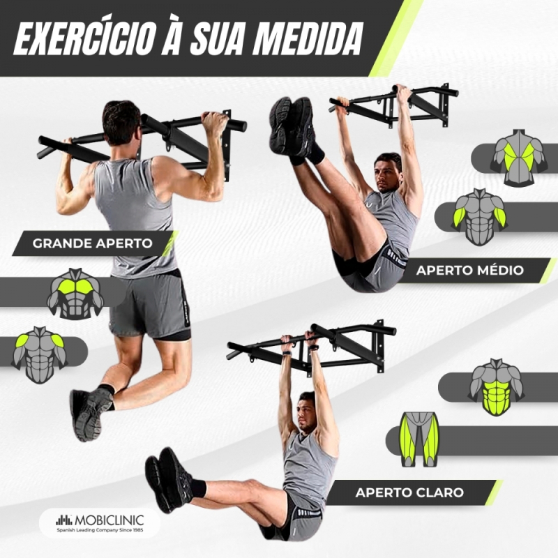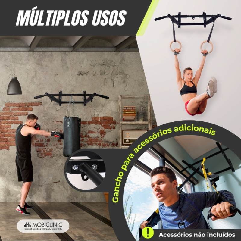 Sua estrutura é projetada para poder treinar de forma intensa e confortável , podendo realizar diferentes pegadas, como pronação e supinação das mãos, além de variar a distância entre as mãos na pegada.