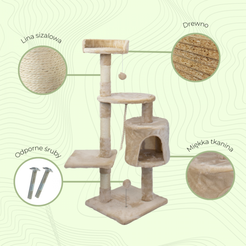 Estes brinquedos para gatos são irresistíveis. O seu gato vai esticar-se, polir as suas garras e fazer todo o tipo de movimentos divertidos. Pode também deitar-se confortavelmente sobre as superfícies suavemente almofadadas e desfrutar da melhor vista da casa ao mesmo tempo. Quando lhe apetecer esconder-se, retirar-se ou descansar, pode fazê-lo no abrigo acolhedor.