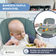 Este modelo totalmente dobrável e versátil ocupa pouco espaço e tem rodas com travões para um transporte melhor e mais confortável. Graças ao seu design, oferece uma infinidade de possibilidades como assento, para que a criança se junte gradualmente à mesa e aprenda a utilizar os talheres, por exemplo.