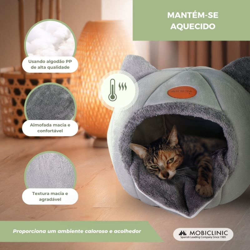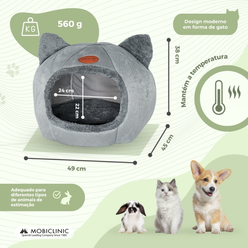 Cova ninho cinza para animais de estimação | Dobrável | Cinza | Suave | 38x49x45cm | Máx. 12Kg | HelloCatty | Mobiclinic