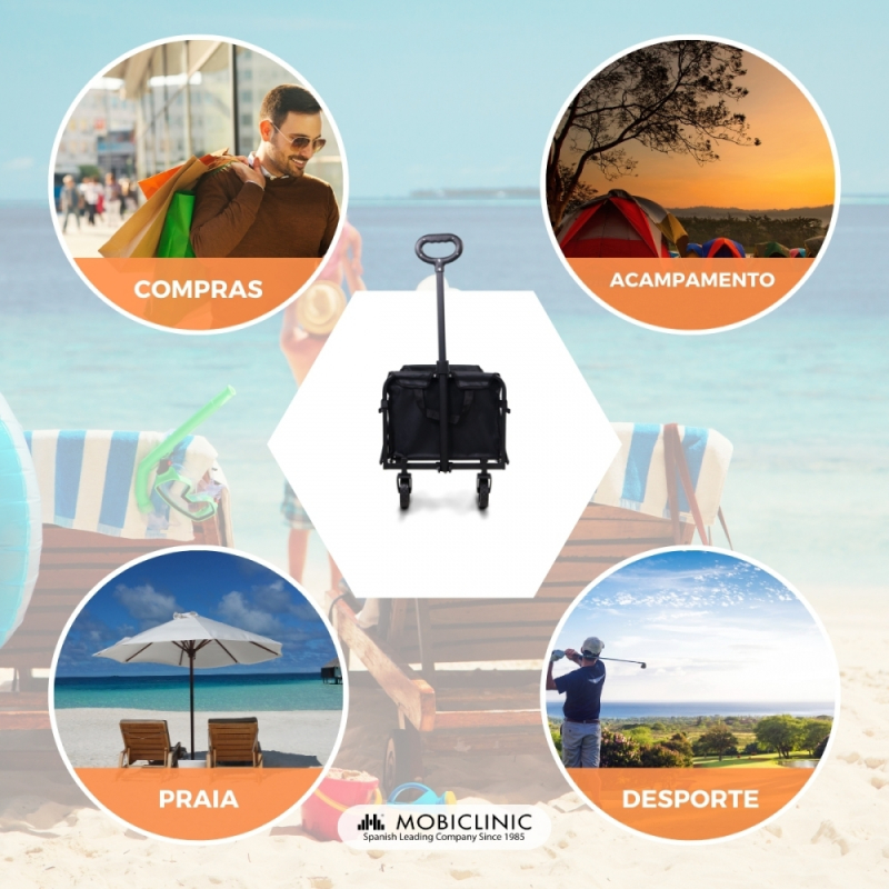 Carrinho de transporte para praia e jardim | Alça ajustável | 71x47x67cm | Dobrável | Rodas 360º | Duna Basic | Mobiclinic