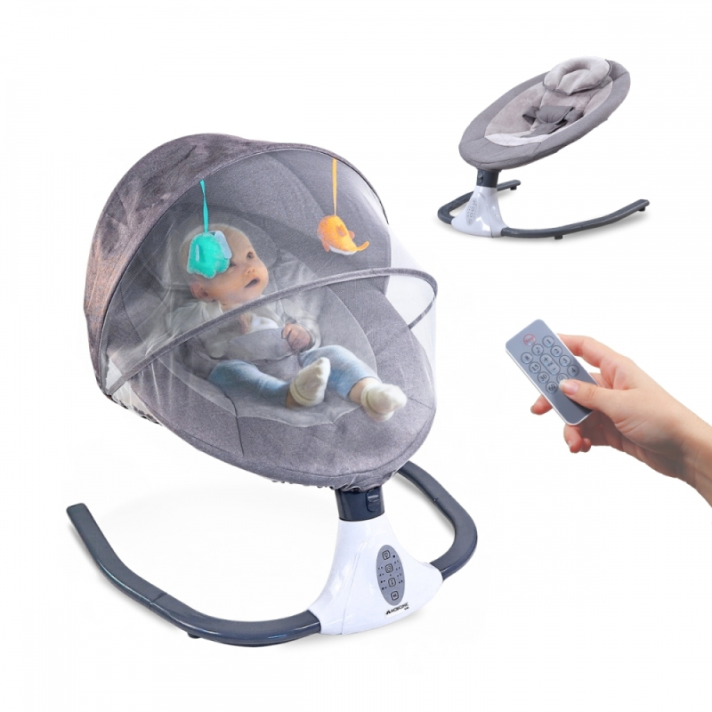 Recursos convenientes para os pais: A rede inclui um controle remoto que facilita o ajuste das configurações sem a necessidade de se levantar. Os pais podem controlar a velocidade do balanço, tocar música ou ativar o temporizador remotamente, o que é particularmente útil quando o bebé já está a dormir ou quando os pais estão ocupados com outras tarefas.