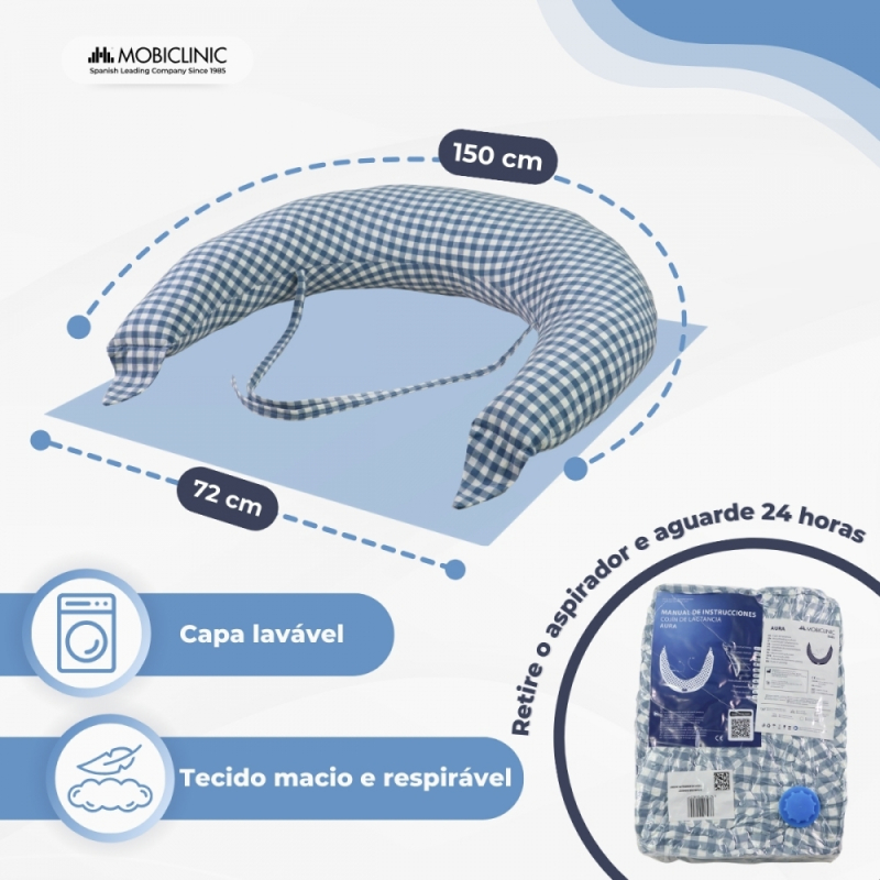 Almofada de Amamentação XXL | 3 em 1 | Multiposições | Alças ajustáveis | Lavável | Estampa Vichy | Aura | Mobiclinic