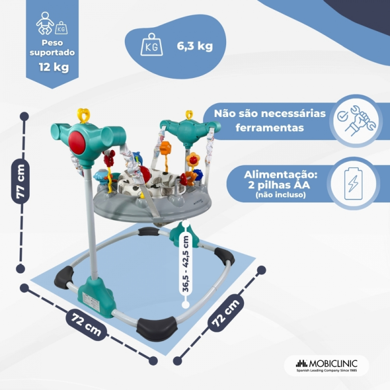 ALTURA AJUSTÁVEL: O jumper para bebê cresce com o bebê graças às suas 3 alturas reguláveis, permitindo o uso prolongado do produto e adaptando-se às suas necessidades e a cada fase do seu crescimento. Ele também garante que seu filho tenha uma postura boa e segura enquanto brinca.
