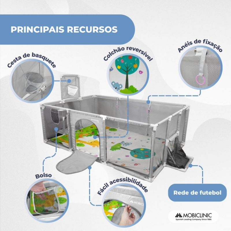 Parque infantil | Tapete | 128x233cm | Argolas | Cesto e rede de futebol | Bolsa de transporte | Kidland | Mobiclinic