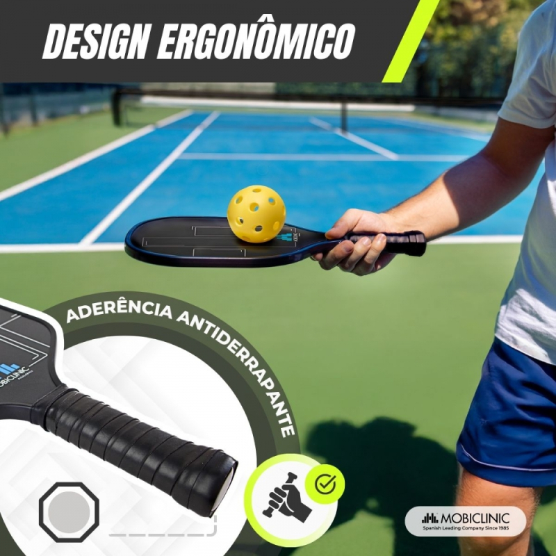 Conjunto de Pickleball | 4 Raquetes de Fibra de Vidro | 4 Bolas | Bolsa de Transporte | Punho Antiderrapante | Mobiclinic