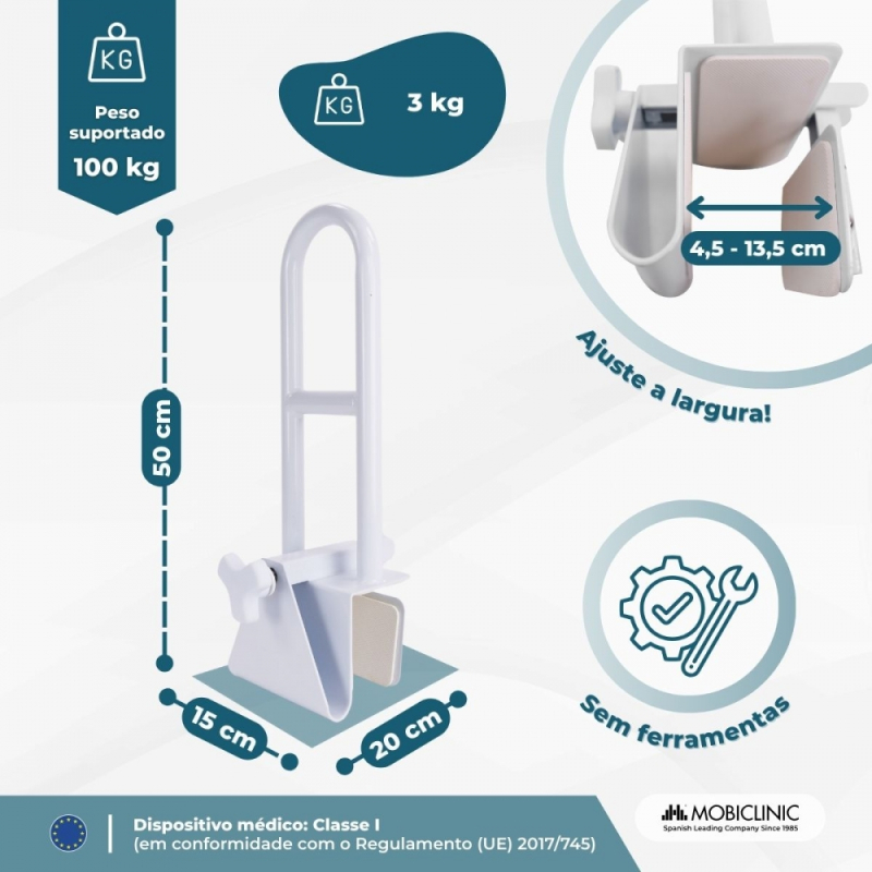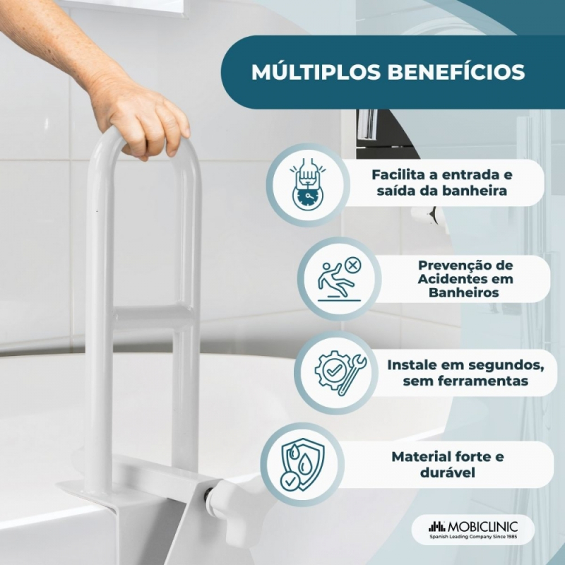 Alça de acesso à banheira | bordas lisas 4,5 - 13,5 cm | Máx. 100kg | Uso clínico e doméstico | MobiBary | Mobiclinic